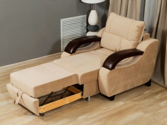 - Плъзгащи се. Тези опции са доста компактни. Те са предназначени за малки апартаменти и могат ефективно да спестят място. Креслото може да се трансформира в легло, където също можете да се отпуснете удобно.