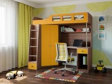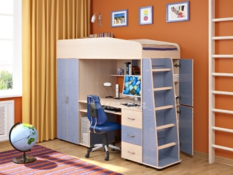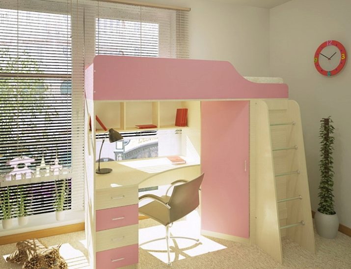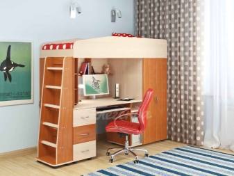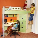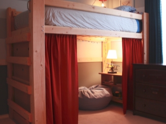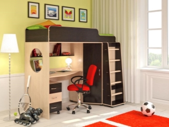 Таванското легло с работно място е подходящо както за деца в предучилищна възраст, така и за по -големи ученици. Масата може да бъде неподвижна или прибираща се. Основният проблем с масите под горния ред е осветлението. Трябва да се уверите, че светлината или пада от прозореца върху прибиращия се плот, или да помислите за пълноценно осветление под горния ред.