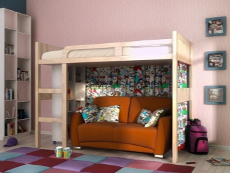 Високите тавански легла са идеални за тийнейджърски деца, вече може самостоятелно да се грижи за вентилацията. Те нямат проблеми с придвижването по повдигащите елементи, а долната зона се нуждае от по -просторна и по -висока – за бюро и компютър.