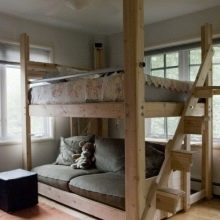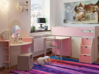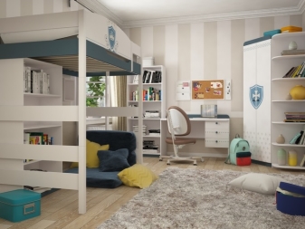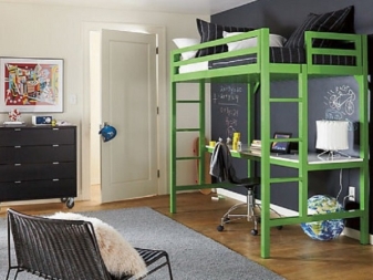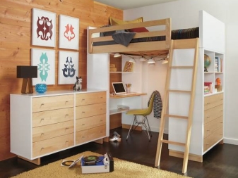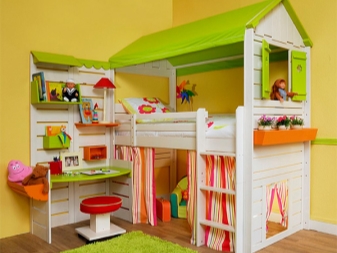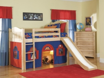 - Зона за забавление. В тези легла долният слой е свободен или оборудван със конструкции за съхранение на детски вещи и играчки..