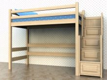 - Подиумната стълба достига ½ височината на леглото и може да бъде допълнена с рафтове за съхранение на вещи.