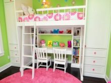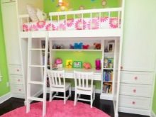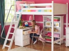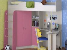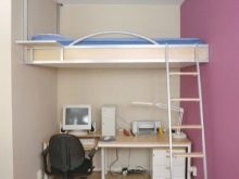 - Леглото за дете в училищна възраст е различно по размер и е подходящо за деца от 7 години. Тя може да съдържа работна зона и училищен комплект под формата на чекмеджета за училищни пособия, дъска с креда и органайзер.