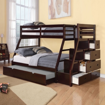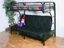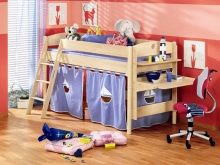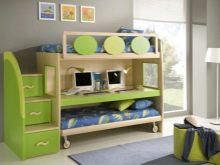 - Модели за деца по възраст от 3 до 7 години оборудвани със защитни брони и са с малки размери, не надвишаващи 160×80 см. Долното ниво може да бъде допълнено с кутии за съхранение, развлекателен модул или малка масичка за творчество.