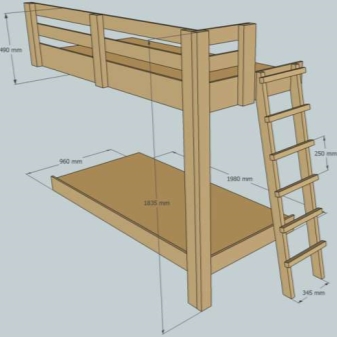 Трудно е да създадете таванско легло от нулата със собствените си ръце, но все пак е възможно. На първо място е необходимо да се създаде чертеж на бъдещия дизайн в съответствие с всички параметри и размери.