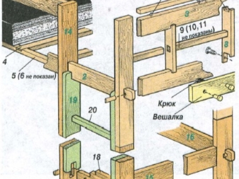 Най -лекият в изпълнение се счита за ъгловия модел на леглото на таванското помещение, което се опира на 4 стелажа. По -лесно е да направите конструкция от дърво или ПДЧ. Вторият тип рамка се отличава с ниската си цена, но здравината и екологичните характеристики на този материал също са ниски. Ето защо се предпочитат дървени летви. Дървените стълбове трябва да са равни, сухи и шлифовани. След това трябва да закупите опорни стойки, самонарезни винтове и да започнете сглобяването. Ставите на частите трябва да бъдат импрегнирани с лепило за дърво..