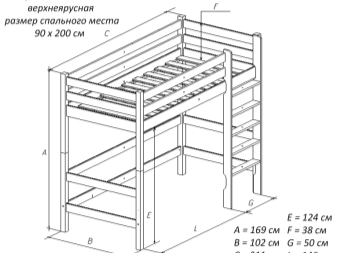 По принцип мястото за спане на леглото на таванското помещение не надвишава 90 см по ширина, но по поръчка може да се направи модел от всякакъв размер и конфигурация. Височината на таванското легло като цяло зависи от размерите на помещението, но оптималното разстояние от тавана до леглото е 70 см. Ниските модели са по -подходящи за помещения с ниски тавани, но за да се спести място е по -добре дайте предпочитание на високи тавански легла, тъй като долният слой става по -достъпен и функционален.