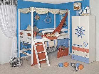 За детските стаи има голям избор от легла в различни стилове. Например, детско таванско легло се вписва добре в дизайна на детска спалня в морски стил. Подходящите цветови схеми и декоративни елементи помагат да се развие въображението на децата и да се превърне обикновената стая в място за разнообразни приключения и игри..