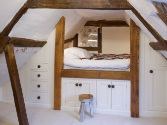 В допълнение към спестяването на място, леглото на таванското помещение ви позволява да създадете оригинален дизайн за малка стая или малък апартамент.. Когато избирате този дизайн, на първо място си струва да се съсредоточите върху такива характеристики като:
