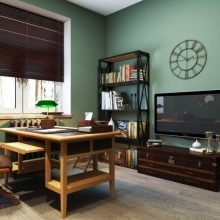 Не по -малко интересен модерен стил е таванското помещение. Той има своя специална атмосфера. Това не означава, че това определено е мъжки стил, но силният пол го харесва най -много. В стила на таванско помещение могат да се използват вече „изоставени“ мебели, но в същото време компетентно актуализирани и, разбира се, модерни. Цветовата гама може да варира от сиво до кафяво. По принцип в офиса на таванското помещение тук се показват някои обекти, които например са скрити в минимализъм.