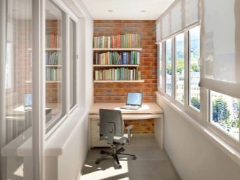 Често хората се опитват да подредят функционален домашен офис на малък балкон. Такива преустроени помещения изискват специално внимание към себе си, тъй като те могат да поставят изключително компактни и леки мебели. Не забравяйте да обърнете внимание на ъгъла и тесните маси за работа..