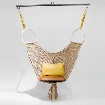 Също така, висящият стол може да бъде разделен според предназначението. Например, градински продукт е предназначен за външен монтаж и следователно материалът му трябва да е устойчив на влага. Но бебешкият продукт трябва да има малък размер и мека седалка..
