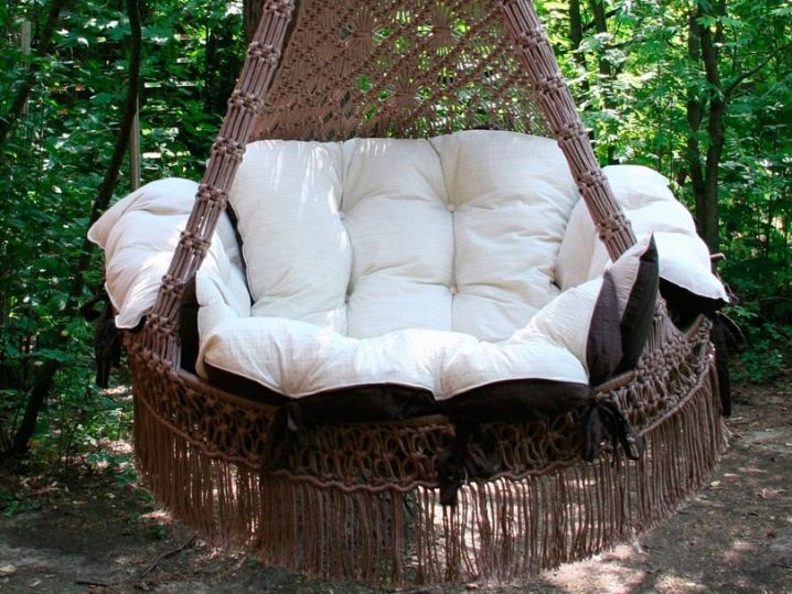 Тези необичайни столове могат да бъдат направени от различни материали. Самият дизайн е лек и надежден и най -важното е, че може да има както мека, така и твърда основа. Люлката може да се използва за украса на лятна вила, спален кът, детска стая, таванско помещение или детска площадка. Можете да го направите сами, като използвате здрави въжета и плътен текстил..