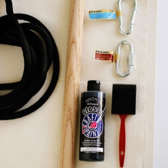 За да го направите, ще ви трябват два метра плътен текстил, дебела еднометрова пръчка от дърво, бормашина, карабинери, здрав шнур, надеждни нишки и боя.