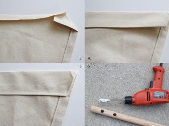 - Висящите дължини на кабела трябва да бъдат прекарани през тъканта и преминават през дупките в пръчката, които са по краищата й. След това трябва да направите възли за сигурно фиксиране..