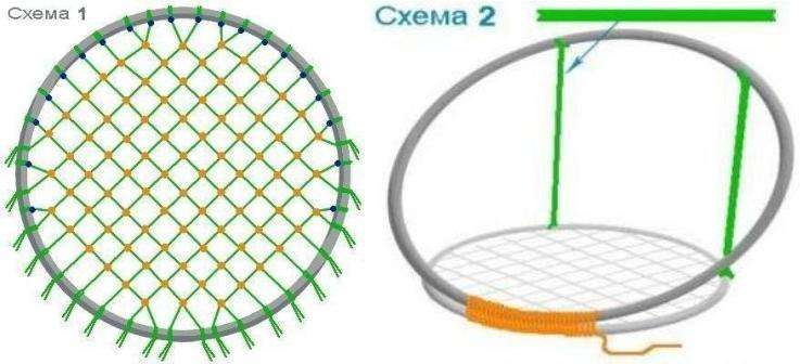 - За да се закрепи ратанът, прътите му трябва да бъдат огънати през обръча няколко пъти и фиксирани краищата им със здрави въжета. Освен това конструкцията трябва да бъде преплетена с тънки пръти, започвайки отдолу и завършвайки отгоре. За да се придаде на продукта допълнителна здравина, всички точки на закрепване трябва да бъдат намазани с лепило..