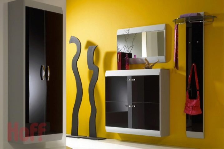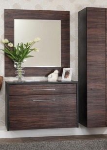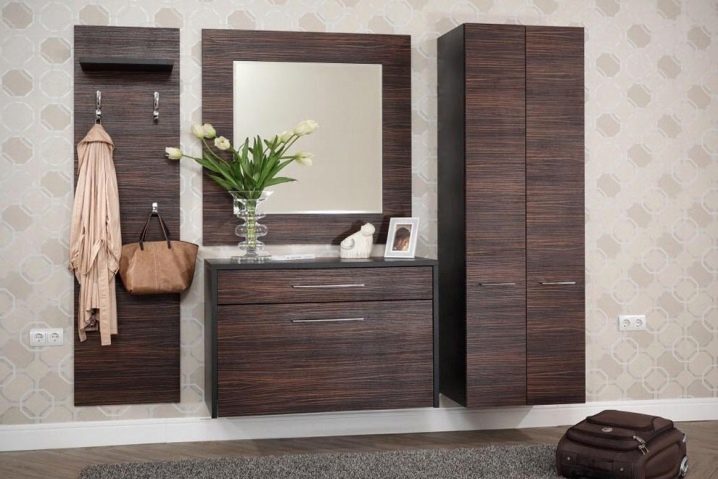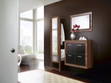 Цветът и дизайнът на висящите шкафове в коридора са разнообразни и индивидуални – от неусложнени ясни очертания до ярки етнически модели. Ако изберете мебели в малък коридор, трябва да дадете предпочитание на светлите фасади. А тъмните шкафове са подходящи за по -просторни зони, където са необходими дълбоки нюанси..