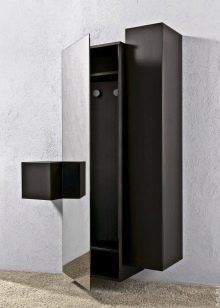 Трябва да се помни, че вратите на шкафа, оборудвани с огледала, визуално ще разширят пространството. Освен това те очевидно са по вкуса на всяка жена. В такива висящи кутии могат лесно да се поберат всякакви козметични продукти и други дребни предмети от дамската тоалетна..