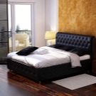 - Високият запас в американски стил изглежда солиден и солиден. Това е доста масивна мебел (и между другото, много често е изработена от масивно дърво). “Американско” легло винаги има гръб – дърво или тапициран с плат. Съединителят на каретата изглежда много добре на таблата. Таблата може да бъде много висока – почти цялата стена. Именно тези модели се поръчват най -добре с чекмеджета в долната част – стилът позволява това.