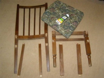 Не е трудно да разглобите стол със собствените си ръце, тъй като неговият дизайн е известен на почти всички. Първо трябва да развиете гърба, а след това и краката. И продуктът се сглобява в обратен ред, така че всички канали да заемат местата си. Ако столът е фиксиран със залепени шипове, местата за закрепване се навлажняват с гореща вода или се напръскват с пара от парогенератор.