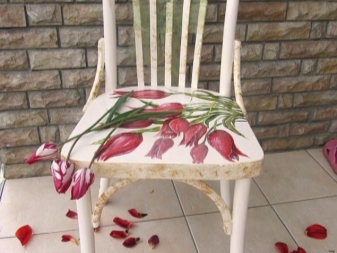 Можете да украсите стола по различни начини. Могат да се използват всякакви материали: хартия, плат, дантели, бои, салфетки и пр. Всичко зависи от въображението на майстора и от нивото на неговите умения. Естествено, ако човек не знае как да работи със сложно оборудване, тогава не трябва да прибягвате до него. Трябва да започнете с нещо по -ясно.