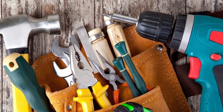 За да възстановите остаряла структура, трябва да подготвите основните материали и инструменти. За да работите, трябва да получите чук, телбод за мебели, самонарезен винт, бои и лакове, разтворител, четки, лепило, ножици, плат и шкурка.