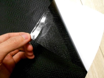 - Залепваща лента или филм помага за подновяване на стари мебели без много усилия. Декоративното самозалепващо фолио може да бъде проектирано да симулира естествен камък, дърво, кожа и керамика. Не се страхува от вода, температурни промени и пряка слънчева светлина. С негова помощ можете напълно да трансформирате избледнели табуретки..