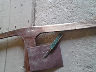 Демонтираните елементи трябва да бъдат заменени незабавно, за да не възникнат грешки по време на процеса на сглобяване. Всички части се заглаждат с шкурка, за да се почистят старателно от стар лак. Това е необходимо, за да може след пребоядисване на мебелите, новият слой да пасне идеално на стола..