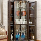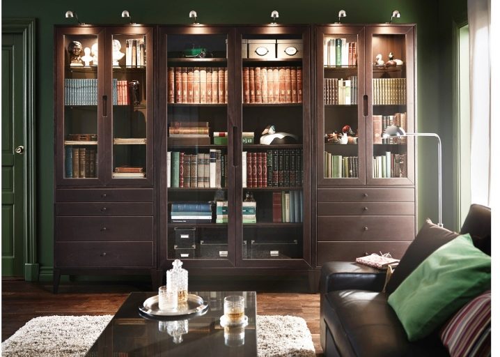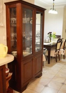 Важно е да помислите какво точно искате да съхранявате в килера.. Ако конструкцията е направена от крехко тънко стъкло, тя изобщо не е подходяща за тежки бокали или масивни съдове.. Следователно в този случай дървените шкафове очевидно се възползват. В същото време крехките и грациозни фигурки и декоративни елементи просто ще се загубят на грубите дървени рафтове. Пространствата от стъкло и лека пластмаса са идеални за тях. Такива материали само ще подчертаят благоприятно изяществото и фиността на тези елементи..