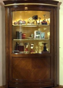 - Ако искате да спестите място в стаята и се стремите да гарантирате, че нито един сантиметър пространство не се губи, препоръчваме да закупите ъглова витрина. Те са идеални за коридори, кухни, дневни. Такова придобиване обаче може да бъде идеално поставено във всяка стая. Така ще можете да използвате така наречените „мъртви зони“ на космоса. Това е чудесен избор за собствениците на малки апартаменти..