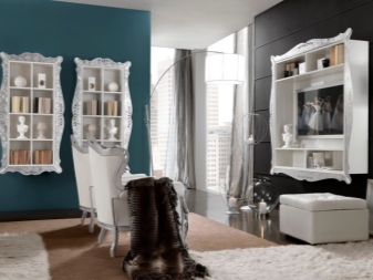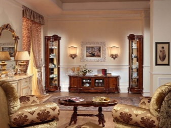Също така е важно да вземете предвид стила на вашия апартамент. Ако искате да добавите витрина, която да допълни пищна всекидневна с позлатени детайли, антични картини и антики, пластмасовата конструкция едва ли ще ви подхожда. В същото време, в модерен интериор, планиран в лек стил, шкафовете от истинско дърво ще изглеждат обемисти и ще привлекат твърде много внимание..