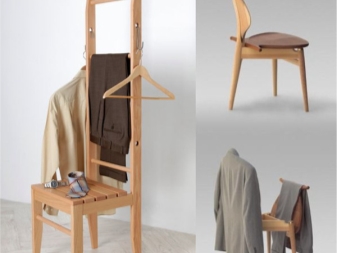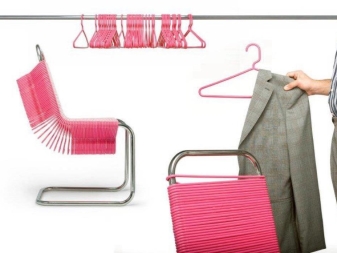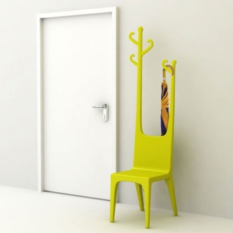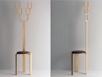 Много модели столове за закачалки изненадват с външния си вид. Особено интересен е стол-закачалка. Тази конструкция може да бъде окачена на стената и дори на тавана във всяко удобно положение. По този начин можете да получите както закачалка, така и рафт на едно място..