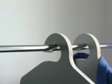 - Висящият модел на закачалка е често изработен от пластмаса. Прилича на обикновен стол за хранене, който има кука в горната част на гърба. В сгънато състояние конструкцията е обикновена закачалка и се прилепва към завесата.
