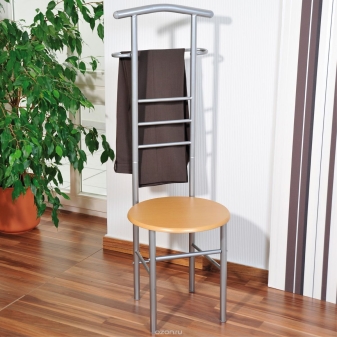 Друг плюс на закачалката за стол – спестяване на място. За малки стаи такова придобиване ще бъде идеален вариант. Дизайнът на подовата закачалка под формата на стол изглежда интересно и украсява интериора. Това е друг значителен плюс..