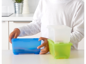 Контейнер като Ikea Glis може да бъде полезен за съхранение на аксесоари. Абсолютно прозрачен, той е с размер 17 × 10 см. Комплектът се състои от три контейнера, които стоят здраво един върху друг. Това ще ви спести място за съхранение..
