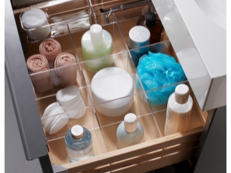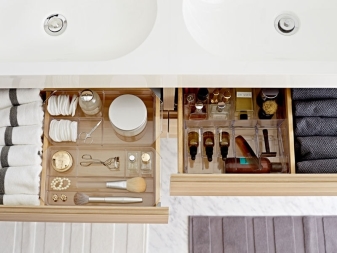 Ако построите или закупите гардероб с вградени чекмеджета, чудесно. Те могат да бъдат малки или големи, със или без прегради. Винаги обаче съществува възможност такъв продукт да не е наличен за продажба. Ако не е възможно да създадете такъв продукт сами, можете да закупите шкаф с обикновени рафтове. В този случай ролята на кутиите за съхранение могат да играят кутии (например под обувки), пластмасови контейнери (възможни са и стъклени контейнери, но те са твърде тежки), торби.