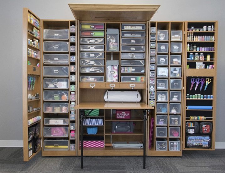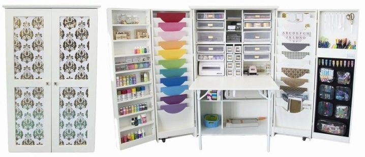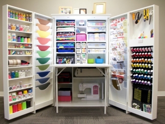 Възможните модификации на занаятчийски шкафове са доста разнообразни. Те зависят от вида дейност на майсторката, нейните предпочитания, а също и от въображението й. Такива мебели трябва да осигуряват комфорт по време на работа, да бъдат удобни за съхранение на консумативи. Тя трябва да се вписва в интериора и да не претрупва пространството..