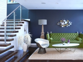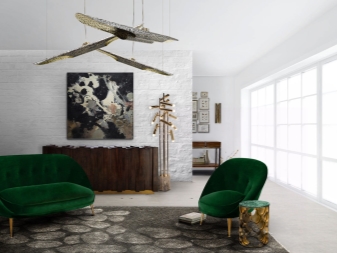 Но най-интересното нещо при създаването на интериора на една стая може да се счита за инсталирането на диван с изумруден цвят. Разбира се, класическият дизайн на стаята се предлага тук. В такива случаи обаче е напълно възможно да изберете и други стилове. Тук са подходящи както класическа комбинация с бели, черни, бежови, кафяви цветове, така и нестандартни жълти или лилави нюанси. С диван с изумрудено оцветяване златото ще изглежда добре в интериора..