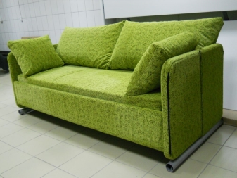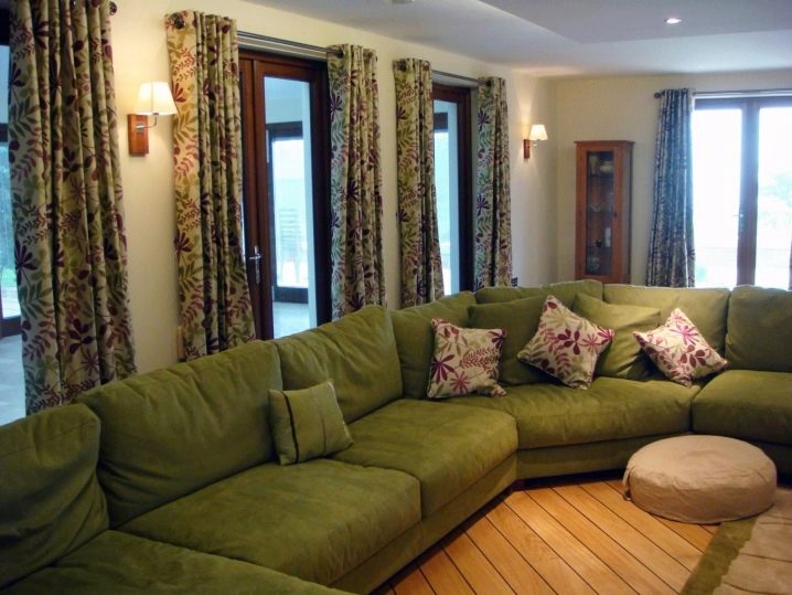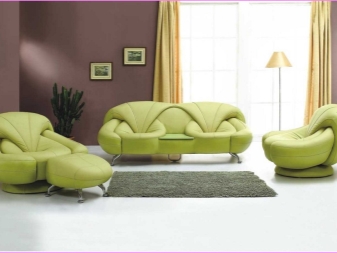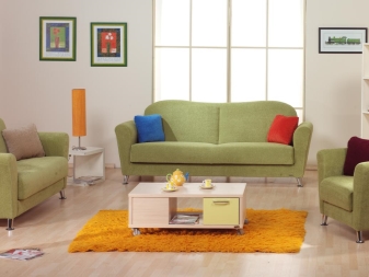 Напоследък най -често срещаният материал за облицовка на дивани е стадото.. Такава изкуствена тъкан е много приятна на допир. Много е практично. Такава мебел няма да абсорбира мръсотията, тя отлично отблъсква течността и се почиства добре. В същото време е приятно да лежите върху него, не изисква допълнително използване на покривала или покривки. Широка гама от цветове на тази тъкан ще ви позволи да изберете точно желания от вас нюанс на зелено. В същото време, на цена, този елемент ще бъде доста демократичен..