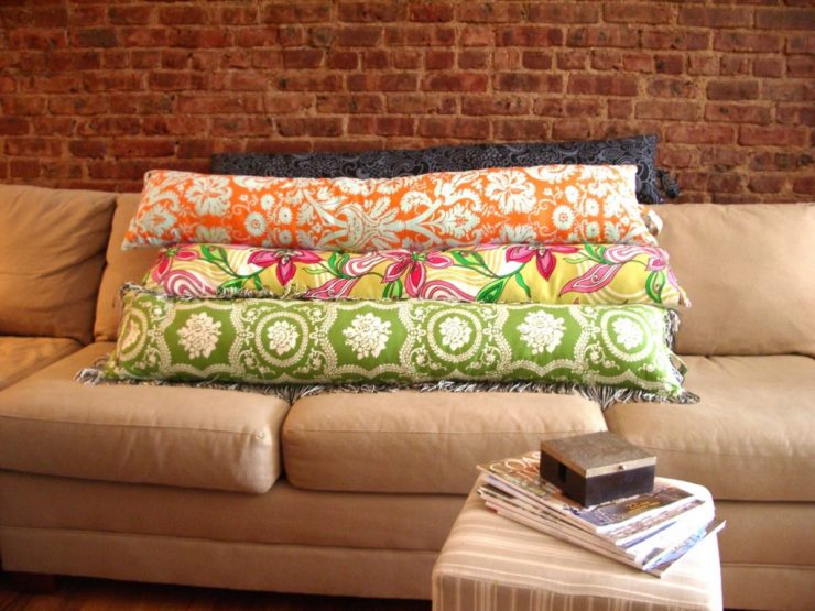 Den næst mest populære sofapude er rektangulær. Det kan enten være tæt på en firkant eller aflang. Op til placeringen i hele længden af møblerne.