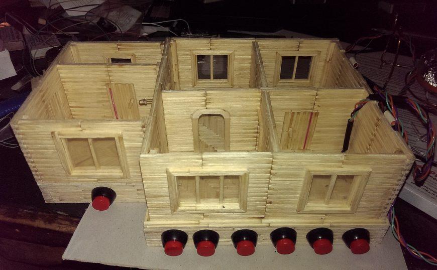 - For at angive døre og vinduer bruges matchhoveder, men afbryd dem, så de ikke stikker ud fra bagsiden.