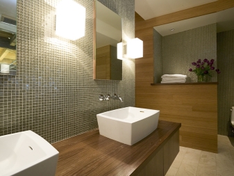 Днес на строителния пазар се представят голям брой различни надземни лампи, а сега подреждането на модерна баня изцяло зависи от въображението, желанието и средствата на собственика..
