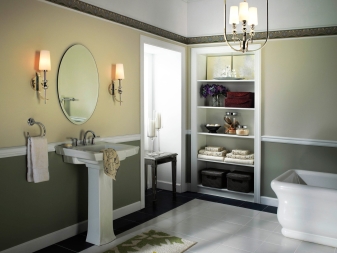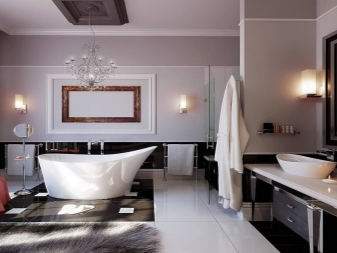 Тъй като банята има висока влажност, изборът най -често се прави в полза на осветително оборудване от кристал, порцелан или метал..