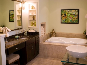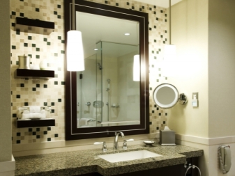 За да украсите стая, много често освен огледало се разграничават и други работни зони. Например вана, шкафове, душ кабина.