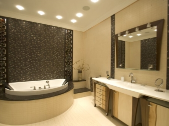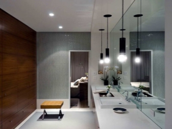 Ако в банята има комбинирано осветление, тогава е необходимо да закупите всички устройства за изкуствено осветление, които са подходящи по стил. Идеалното решение е технологията за осветление, която е част от една колекция.