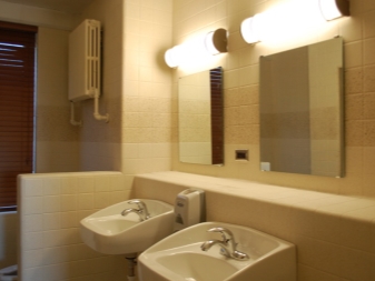 Поради факта, че в помещението постоянно има висока влажност, падане на температурата, конденз, пара и воден спрей, при избора на лампа трябва да обърнете специално внимание на материала на устройството. На първо място, тя трябва да бъде водоустойчива и устойчива на редовни температурни промени..