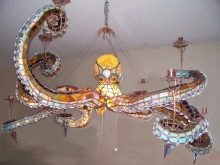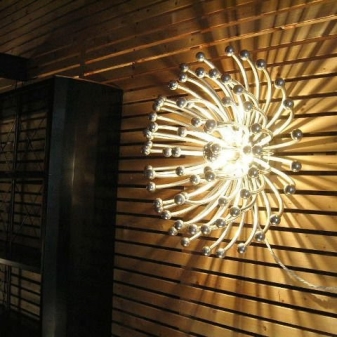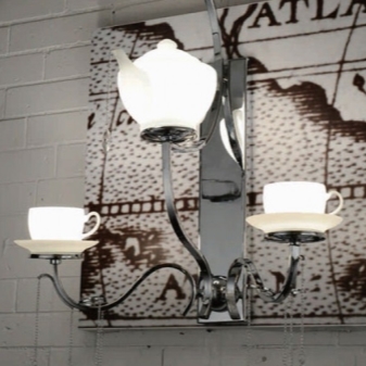 - Дизайнерски стенни лампи не може да се похвали с високо ниво на функционалност. Такива осветителни устройства действат като декоративен компонент на интериора. Такива полилеи могат да се използват като вторични осветителни тела;