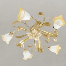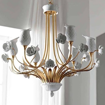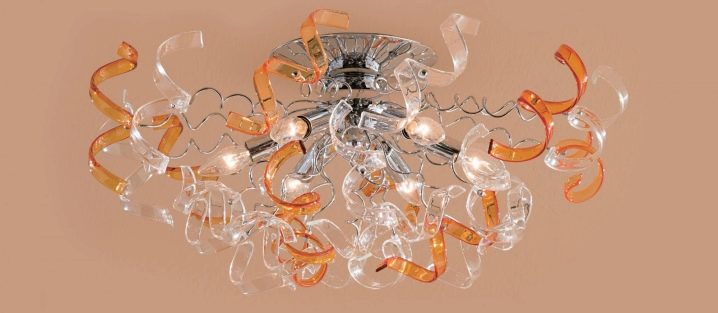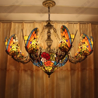 Грациозните дизайнерски лампи с витражи в стил Тифани винаги са се считали за декорация на тавана на всяка стая. Авангардният стил приема необичайни форми, размери и цветови композиции. В продажба можете да намерите кристални дини, фосфорни полумесеци в рамка със златист цвят.