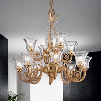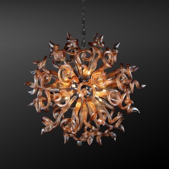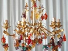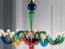 Дизайнерските полилеи, изработени от многоцветно муранско стъкло, могат да подчертаят разнообразието на палитрата на стаята.
