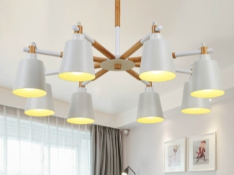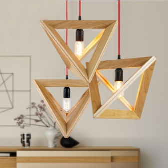 Желанието да се установите в пиратска стая, да усетите духа на Средновековието или авангарда е въпрос на вкус. Така че таванните лампи с 3 рамена с текстилни абажури, пирамидални изделия и т.н. ще изглеждат елегантно.. Преди да купите дървен полилей, вземете решение за типа модел: