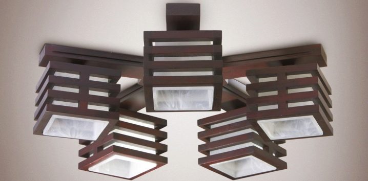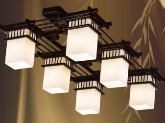 Японски стил включва използването на дървен полилей, комбиниран с материал като коприна. Ковани вложки и модерно гравиране придават богатство на аксесоара. Правилната геометрия се използва във всяка посока на изток, така че вашето осветително тяло трябва да е ясно квадратно, правоъгълно и симетрично..